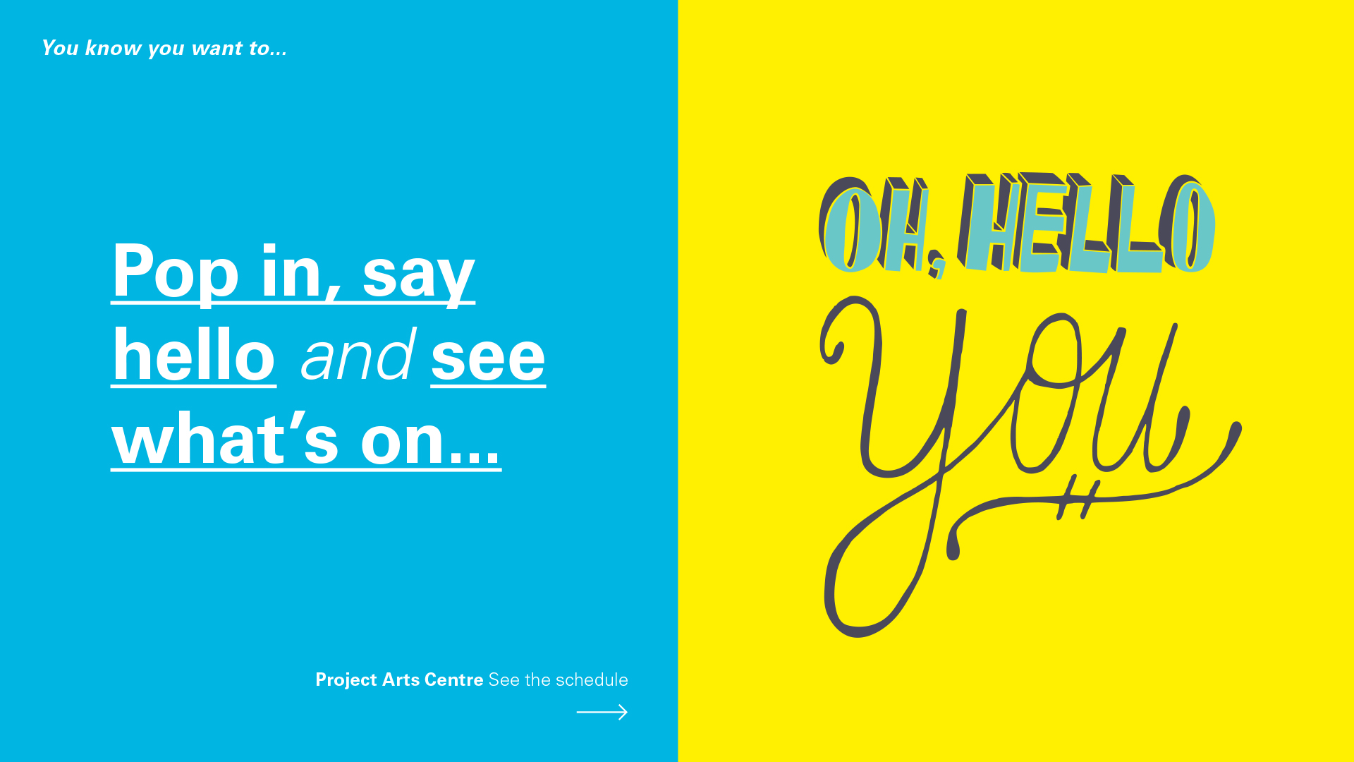 Project Arts Centre is Ireland’s leading centre for the development and presentation of contemporary art, dedicated to supporting artists and protecting the next generation of Irish artists across all forms of the performing and visual arts.
