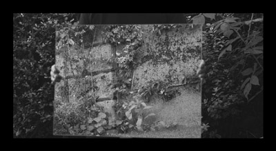 As the image pans over tangled vines and wilful bushes, climbing up textured walls and reaching for horizon followed by sky, we can imagine the real space of the garden, flanked by a towering wall – the embankment of a commuter train track.