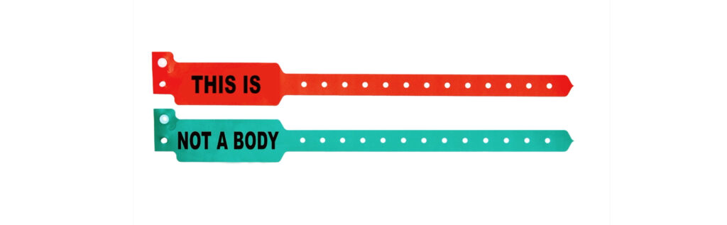 Each made work taking on myth or ‘aura' and what it's like to occupy the institution and the connections between disability and illness. D Mortimer, wrote an essay on 'Limp as Mince’, thinking of the limp as a queer or a gay mince, and tying these two ideas together. Thinking through Jean Genet, and thinking about the ‘submissiveness’ of disability; how disability ties into ideas of domination in the bedroom and how that might be complicated as a transmasc person. Day Magee made a short work, they call these short works ‘performing images’, playing on the idea of The Princess and the Pea. So, taking on this story of the princess who was forced to find a pea in her bed and considering this as a Queer Crip myth, relating it to their own experience of chronic pain and neurodiversity and how could this tell new stories? And then Panteha presented NOT A BODY moving image work, which was a repeating motif of hospital bracelets, used to explore the semantics of naming and language from the perspective of a medicalised individual, thinking about naming and stigma in the hospital.