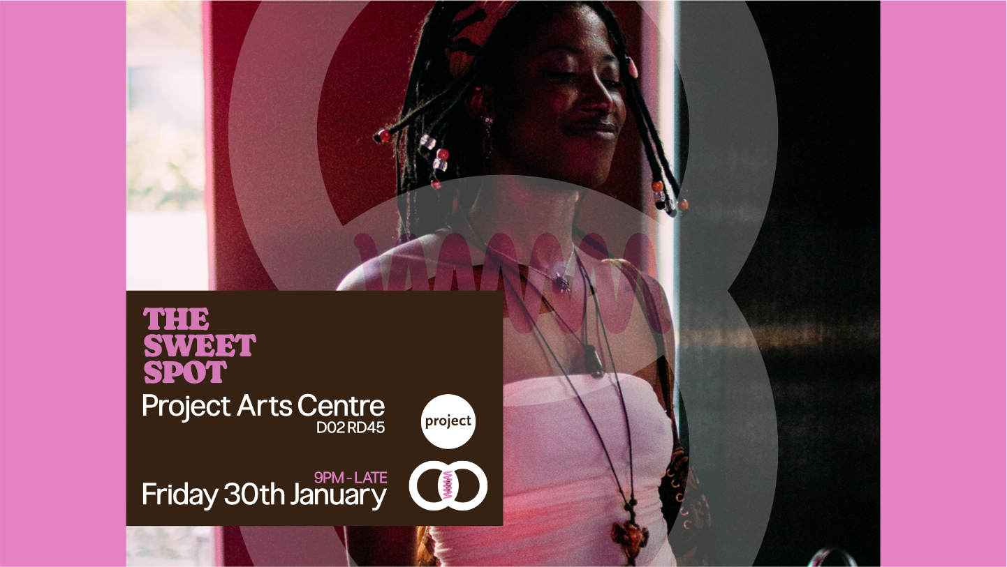 The Sweet Spot is a monthly get together and late night party at Project Arts Centre hosted by Blkcnvs. It is a shared commitment to presence and cultural connection in Dublin City Centre. At a time when so many cultural venues, studios, and community hubs across Ireland and beyond are disappearing, being present is an act of care.