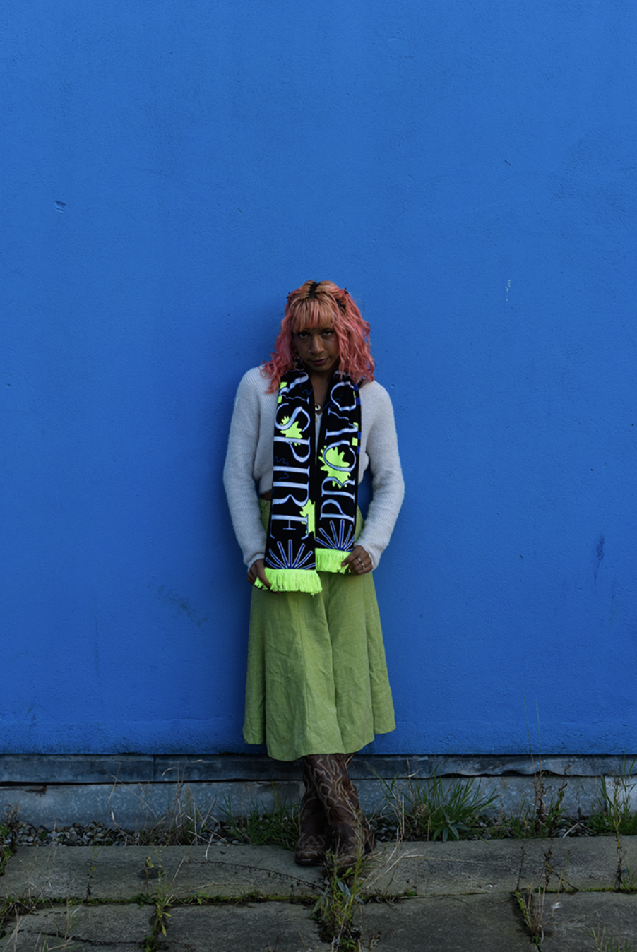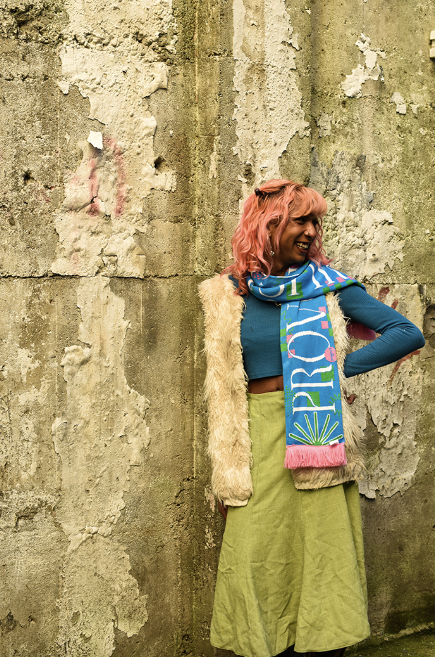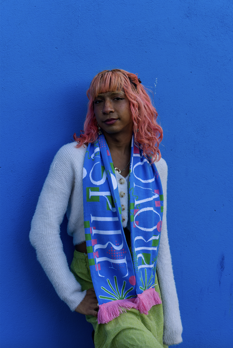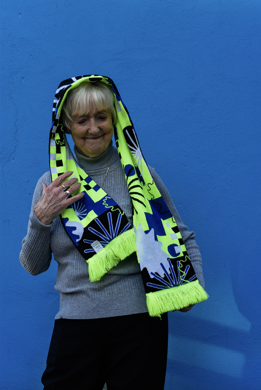 Designed in two colourways, each scarf is heavily inspired by the lively signage and symbols found in the foyers of Project Arts Centre. The words “Provoke, Inspire” weave between abstract shapes and colours — an ode to the extraordinary, vibrant energy of Project.